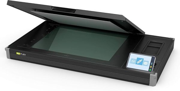 Large-format flatbed scanner with 1200 dpi optical resolution, 18x24" scan area (extendable to 24x36"), book scanning mode, 7" touchscreen for PC-free operation, and CleanScan+ shadow-free imaging.
